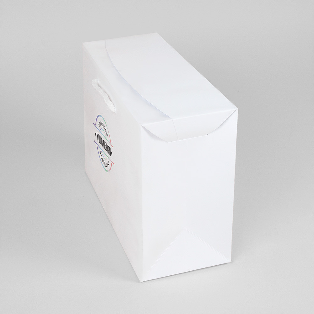 Le dinamiche di stampa nella scatola- borsa di carta sono illimitate. Senza alcuna restrizione, l'intera superficie della borsa può essere stampata in tutti i colori che volete, e potete anche usare delle foto. Potete progettare e scegliere lo stile che si adatta al vostro profilo aziendale creando un imballaggio straordinario.